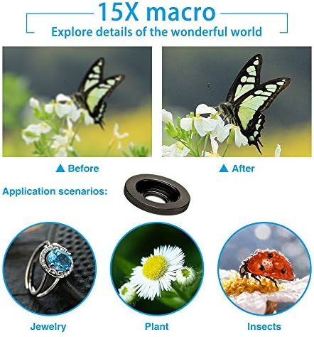 4K HD Super Wide Angle Lens& Macro Lens: The highlight of the iphone camera lens kit, it produces no distorted image, the picture quality is much better than others. The wide angle lens allow you to fit more into the frame. Macro lens focus much closer than your phone camera.
