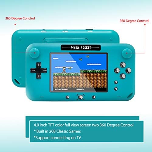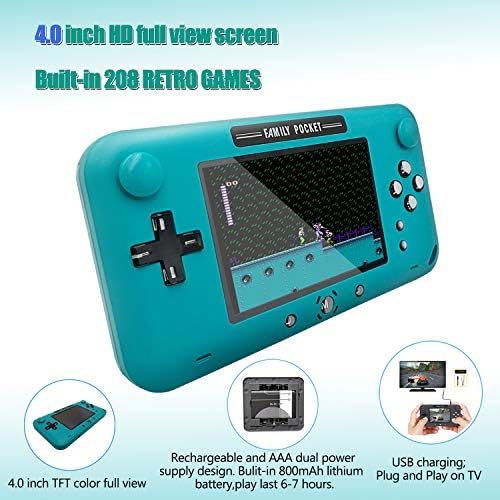 Retro handheld design with 2 joystick and buttons, easy to control !The video game console is a professional mini handheld arcade, designed for children and adults, with 208 video games.
