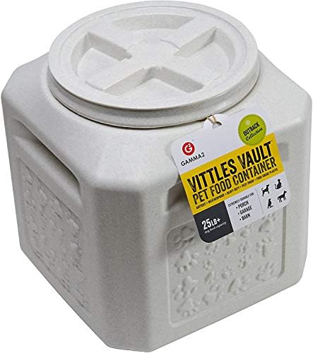 The Vittles Vault Plus 25 is just right for keeping your pet food fresh in that small space with the space efficient square elegantly designed style shape. They are absolutely Airtight to keep your pet food fresh. The easy grip molded handles make it easy to move even when full. Ideal for those mid size bags of pet food. It has a free measuring cup too.