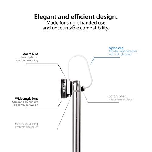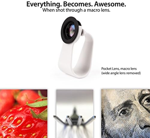 A wider angle: Adds approximately 20-25% more to your image. Use this to capture more of the scene without needing to step back. A 10X Macro magnifyer: Unscrew the top lens and reveal a tiny lens that makes the little things awesome.