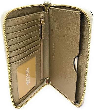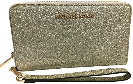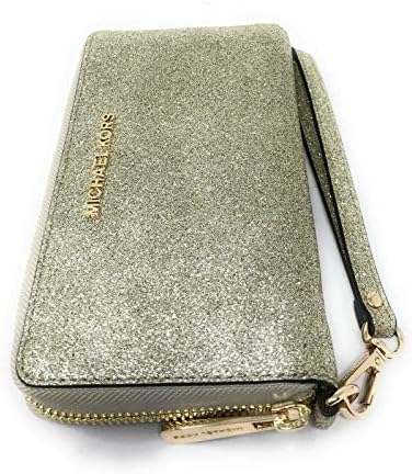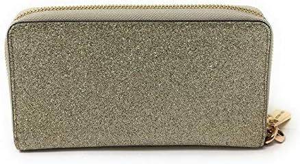 Smooth Glittered Leather, golden hardware Zip around closure Interior: 1 zipper pocket, 1 phone pocket, 1 ID window, 1 long slip pocket and 6 Credit Card Slots Detachable wrist strap 7″ L x 4″ H x 1″ D