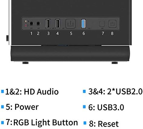 [TOP I/O PANEL]–1 x USB3.0 Port,2 x USB2.0 Port,1 x HD Audio,RGB Button,Power/Reset.
