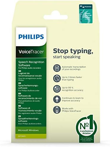 Turn your recordings into text quickly, easily and accurately. Record documents and notes on the move in high quality. Back at your desk, simply connect the recorder to your computer, transfer your files and Let the included software automatically turn your speech into text. The two high-fidelity stereo microphones are designed to deliver clear voice recordings and reduce background noise, even in noisy environments. High-quality recording is essential for clear playback and accurate speech recognition results. The high-capacity li-ion polymer battery can be easily charged through a standard micro USB jack. This guarantees extended battery life for extra-long recording up to 50 hours, ensuring that your recorder will always be ready to work when you are. Voice-activated recording is a convenient feature for hands-free recording. When enabled, recording will start automatically when you begin speaking. Recording pauses when you stop and resumes automatically when you begin speaking again. Capture your recordings in stereo PCM or MP3 format. The popular MP3 file format allows you to play back your files virtually anywhere and simply share them with others. The large color display offers sharp images, making it easier to see and read everything at first glance. The clear user interface supports seven languages and is optimized for easy, intuitive operation. One of the main advantages of using an audio recorder instead of a smartphone for capturing audio, is that you can record for even extended periods of time without being interrupted by any incoming text messages or calls. It also means your smartphone is not blocked during this time and you can use it simultaneously. With the 8 GB of built-in memory, your recorder is able to capture multiple days of continuous recording. The Philips voicetracer comes with preinstalled scenes which automatically adjust the recorder audio settings depending on what you want to record, whether it is notes, audio for speech recognition, interviews, lecutres, music or meetings. Put an end to tedious typing and create text documents directly from recorded audio files. The speech recognition software automatically converts your recordings into a text file. Using the speech recognition software is at least three times quicker than typing Up the document yourself. Simply record your documents and notes, connect the recorder to the computer, click the ‘transcribe’ button and the software does the typing for you. The speech recognition software provides an astounding accuracy rate of up to 99 %. It also never misspells a word, so typos are a thing of the past. The smart algorithm learns from corrections you make To the transcribed text. This means the more you use the software, The more accurate your results become. The software also memorizes patterns, and commonly grouped words when you speak, to product which words are most likely to occur. This acts as an extra boost to your speech recognition accuracy.