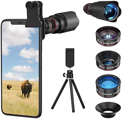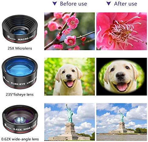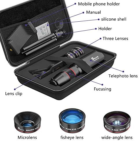 【Expand Your Phone’s Picture-taking Capabilities】 22X telephoto camera lens – Magnify distant subjects and zoom in for vivid close-up shots; 235° fisheye lens – Create fun and unique circular mystical result picture; 25X macro lens – Capture all the intricacies and details with precision-focus for razor crisp macro photos (Not for zooming in on distant object); HD 0.62X super wide angle lens – Capture a wide field of view for stunning perspectives with virtually no distortion.
