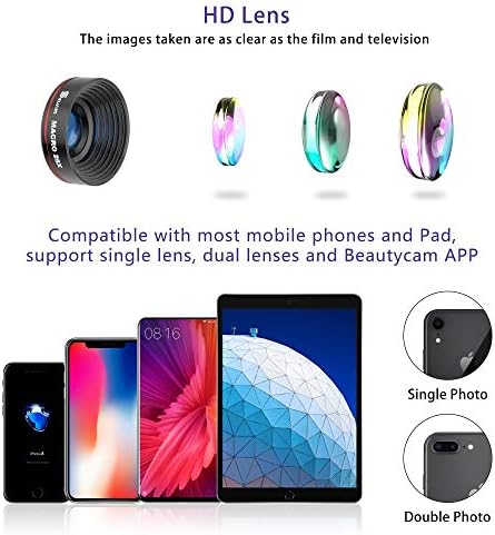 【Works well on Front/Rear Camera, Single-camera/Multi-camera Phone】 The lens screw ring on the clip is slidable so you can slide it to reach the main camera of multiple cameras. A cell phone camera lens kit that works with iPhone XS MAX XS XR X 8 Plus 8 7 Plus 7 6 Plus 6 5S 5C 5 4S Samsung Galaxy S9 Plus S9 S8 Plus S8 S7 Edge S7 S6 Edge+ S6 Edge S6 LG iPad Motorola HTC One Plus HUAWEI and other Android phones.