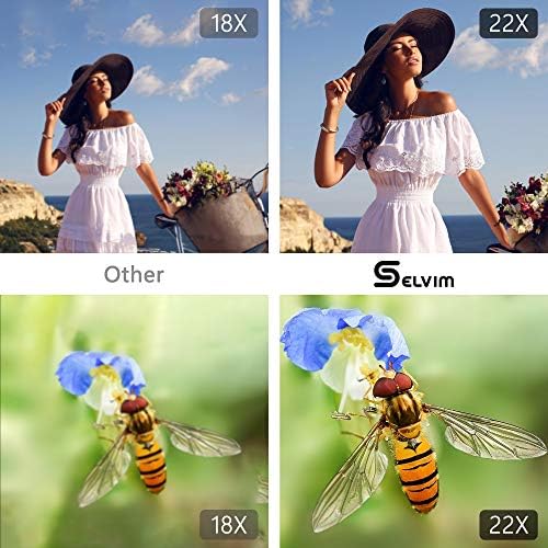 【Industry-leading 4 in1 Phone Lens Kit】 Designed for enthusiasts and professionals. This lens kit includes a 22X telephoto lens, 235° fisheye lens, HD 0.62X super wide angle lens & 25X macro lens, flexible clamp, phone clip, upgraded metal tripod, an eyecup, cleaning cloth & storage case. Selvim phone lens is great addition to turn your phone to be a go-to camera. Eyecup allows you to use the telephoto zoom lens as a monocular or a telescope, which marvels your senses!