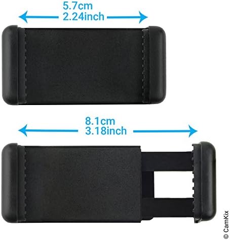 UNIVERSAL PHONE HOLDER: The universal phone holder connects in landscape or portrait mode and can hold phones with a width between 2.24″ (5.7 cm) and 3.18″ (8.1 cm).