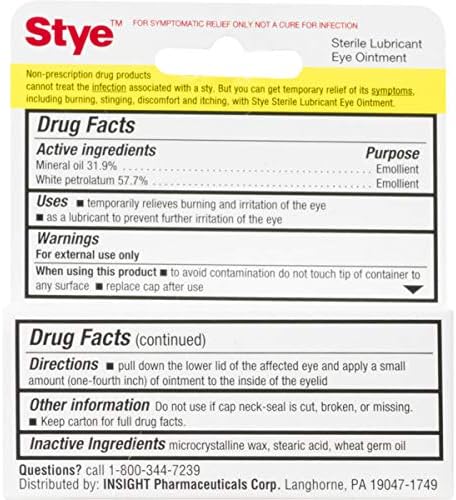 Clinically proven symptomatic relief from the #1 brand in stye treatment relief! Stye Eye Ointment safely and effectively relieves stye symptoms such as burning, itching and stinging. In addition to providing temporary relief of burning and irritation, this ophthalmologist tested eye ointment can be used as a lubricant to prevent further irritation of the eye. Non prescription drug products cannot treat the infection associated with a stye, but you can get temporary relief of symptoms. If your stye doesn’t heal within a week and/or your symptoms worsen after several days of home treatment, please contact your healthcare provider.