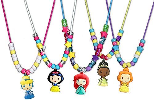 Design your very own Disney Princess necklaces with this fun Easy to use simply slide the beads and character charms through the silicone necklaces.Mix and match the colorful beads and character charms to create new looks over and over again!Simply design your necklace with the included beads & add a rubber charm to finish