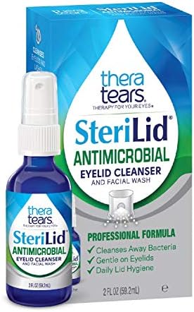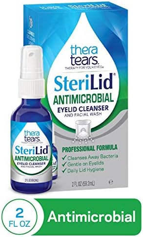 Did you know that bacteria on eyelids can intensify dry eye symptoms? Wipe away those chronic symptoms with TheraTears SteriLid Antimicrobial that kills 99.9% of bacteria* while gently cleansing your eyelids. Sterilid Antimicrobial spray with hypochlorous acis is a professional formula for superior daily eyelid and eyelash cleansing. Our antimicrobial eyelid cleanser kills 99.9% of bacteria* thanks to the hypochlorous acid and the unique pH balanced formula. This formula is gentle on eyelids, requires no rinsing and is soap free. Sterlid Antimicrobial is a convenient and affordable over-the-counter solution that is as effective as a prescription. Available in 2 FL OZ spray bottles. *Antimicrobial Ingredients- Water, PEG-80 Sorbitan Laurate, Sodium Trideceth Sulfate, Cocamidopropyl Betaine, Sodium Lauroamphoacetate, PEG-150 Distearate, Sodium Laureth-13 Carboxylate, Linalool, Sodium Chloride, Sodium Piperazinoethyl Acetate Ethylsulfonate, Boric Acid, Sodium Perborate, Panthenol, Allantoin, Cocamidopropyl PG Dimonium Chloride, Melaleuca Alternifolia (Tea Tree Oil) Leaf Oil, Trisodium EDTA, Etidronic Acid, Citric Acid, Sodium Hydroxide. Directions- Shake well before use. To pump, tilt unit towards nozzle and press completely and crisply to ensure that you create a foam with the pump dispenser. 1. Clean fingertips with SteriLid prior to use, rinse.2. Pump SteriLid foam onto clean fingertips. 3. Close eyes, and gently massage foam into lids and lashes. Avoid touching eyes directly. Leave in place for 60 seconds for maximum effectiveness. 4. Rinse with water.That’s it. Lid hygiene to maintain eyelid health has never been easier. And SteriLid not only cleanses the eyelids and eyelashes, but also conditions the delicate skin around your eyes with its hypoallergenic, pH-matched-to-skin formula.Use twice a day or as directed.
