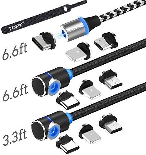 ★Strong Magnetic&Universal 3in1 Design: TOPK magnetic charging cable has super strong magnetic,which will avoid disconnecting,Support normal charging,Output 5V/2.4A (max),universal 3in1 design,one cable compatible with iPhone,type c devices,android devices,Do Not compatible with Apple Car Play,Android Auto and data transfer