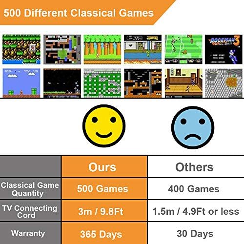 đ±ă500 Classic Gamesă- This handheld game console provide 500 built-in classic games including 2D, sports, racing, shooting, fighting games. Itâs suitable for either adults and kids. Itâs a good chance for you to remind your childhood memories and play it with your mates and child.