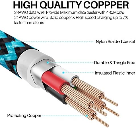 -Charging Faster, Sync Data Quicker, MAX support 9V 3A power, 28AWG copper data wire provide maximum 480Mbit/s speed when transfer files