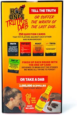 Play Hot One’s Truth Or Dab the game with the official Last Dab hot sauce, with a 10/10 heat level, and a 2,000,000 scoville rating.